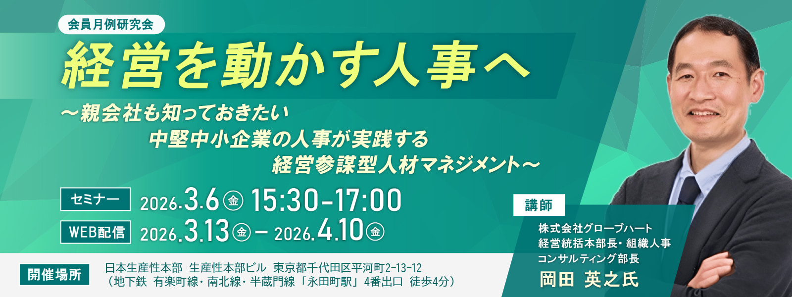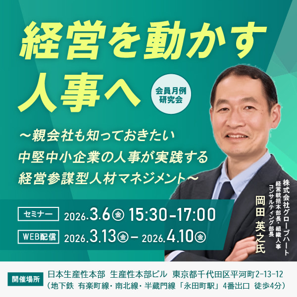 中堅・中小企業や大企業子会社の人事部門は、「ひとり人事」「数名体制の人事部」が少なくありません。しかし、小規模組織の人事部門は、自律的に経営層との対話機会を創出し、経営層の構想する理想の企業像と戦略目標を深く理解した上で、組織人事施策を通じた具体的な貢献が可能である旨を提案する「経営参謀型人材マネジメント」を実践することが可能です。